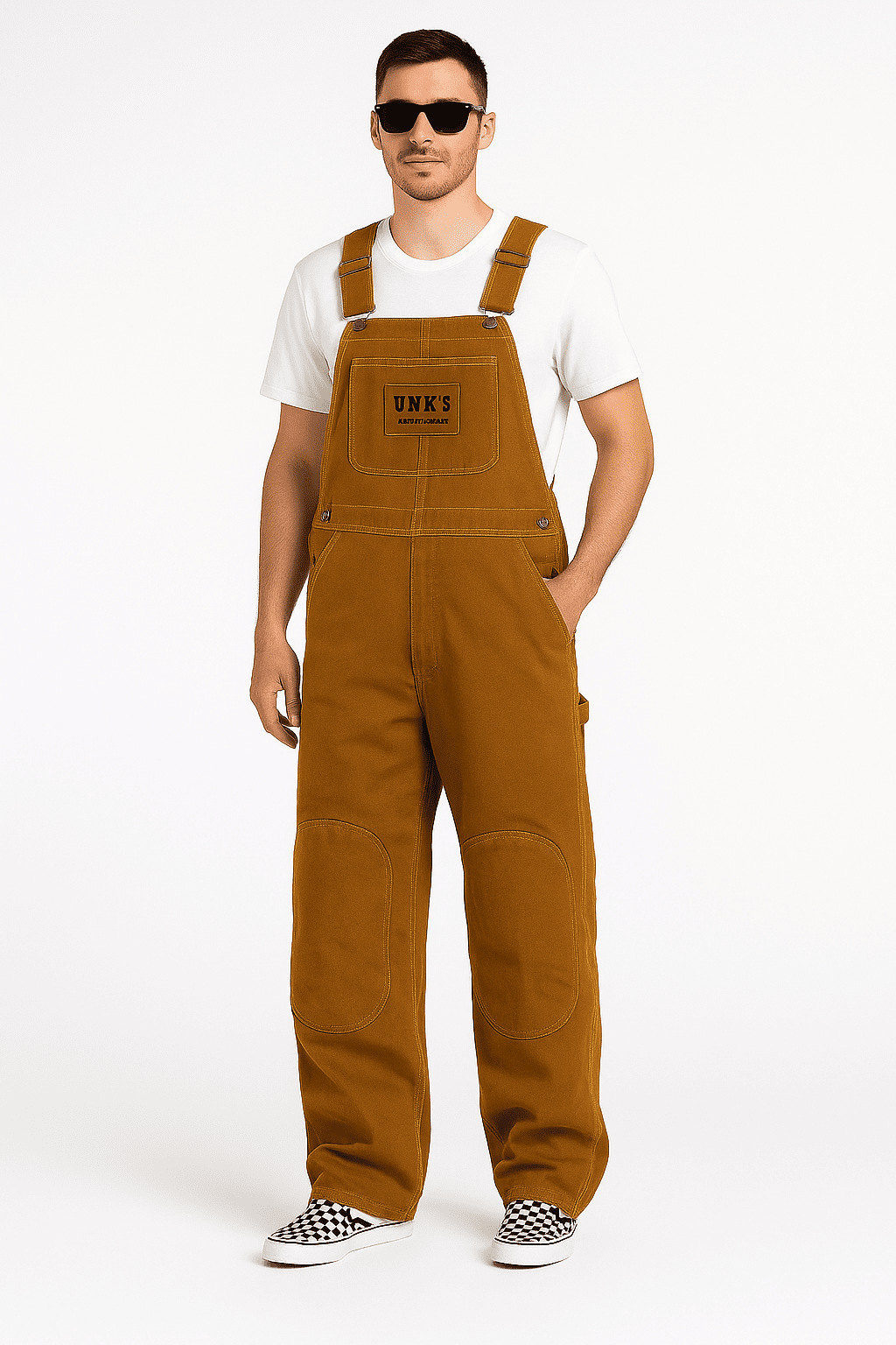 UNK’S Overalls are built from premium heavy-duty denim with reinforced seams and a rugged design that’s made to last. Featuring padded double knees for extra comfort and durability, plus functional utility pockets and a tool loop, these overalls deliver the perfect balance of toughness, comfort, and style—workwear you can truly count on.